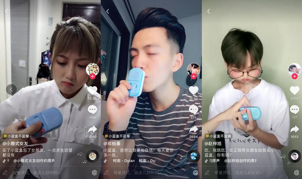随着短视频的不断升温,抖音成为了人手必备的娱乐APP,一个一见倾心、万种瞩目的抖音挑战赛似乎成为了近日最吸睛的抖音娱乐。“小蓝盒不蓝瘦”挑战赛开始之后,抖音、微博、微信纷纷被小蓝盒轰炸,不但网红美眉喜欢小蓝盒,而且抖音小哥哥也分分钟种草小蓝盒,一时间,小蓝盒成为了“抖音神药”。
